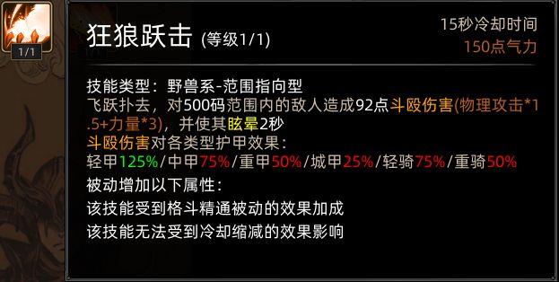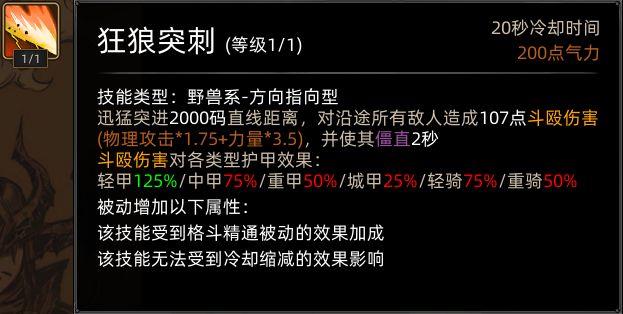 狂狼突刺强化后伤害大增,并附带强力控制效果。