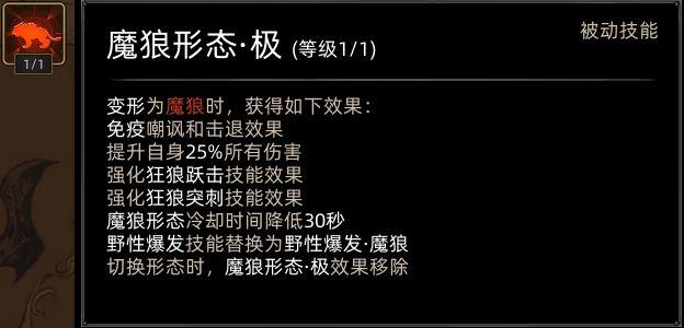 野性之魂这套技能页因变身状态下无法使用主动技能,在当前mod环境下,难以学习关键技能,尤其是连击技和宗师四阶等强力技能,也无法触发队友连携效果,整体表现较弱。因此,作者并未选择优化原技能页,而是在保留角色背景设定的前提下,对技能进行了大幅调整与重构。