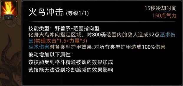 火鸟冲击威力增强,附加火焰领域效果