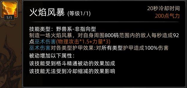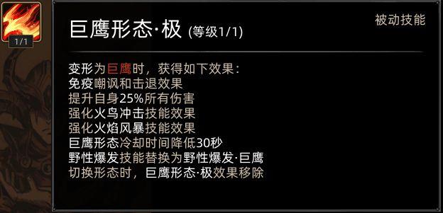 鹰极强化火焰风暴,伤害增强并附带眩晕效果。
