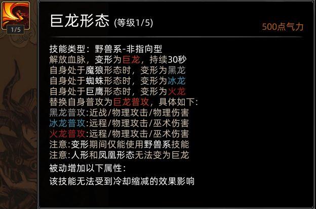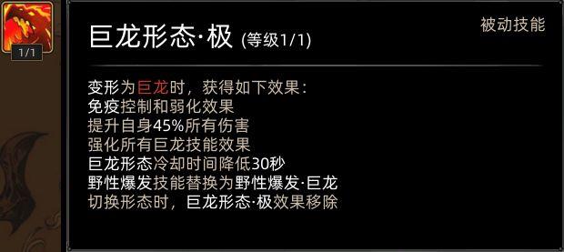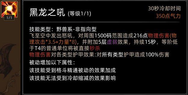 学习龙极后,野性爆发技能变为黑龙之吼。