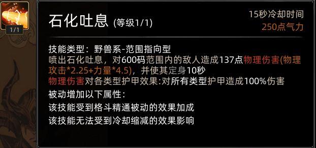 变身为黑龙后,野性扑击变为石化吐息。
