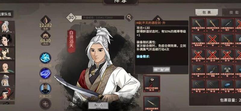 选黄天当主角,队伍里加上刘和琅,再随便挑两个角色,一起推进主线和支线到30级。到30级后,刷对应副本,同时用商店里的残章拼命提升武学等级,就这么简单。