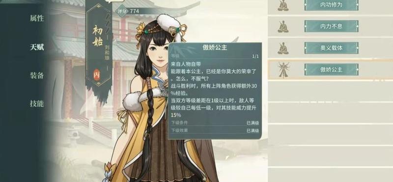 傲娇公主天赋,提升全队30%经验获取。