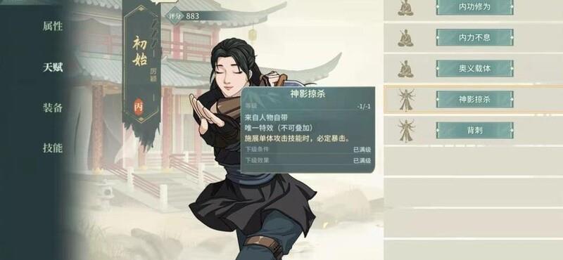 神影掠杀天赋,单体攻击必定暴击。