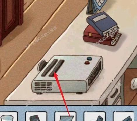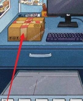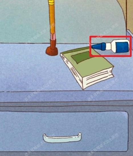 将场景移至左下角,点击桌面,寻找并获取桌面上的强力胶水。