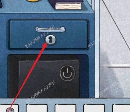 在桌面翻倒的书中发现钥匙,用它打开右侧最边上的抽屉。