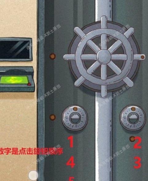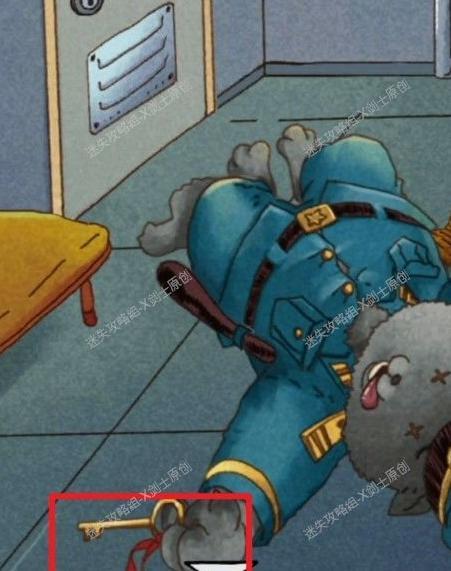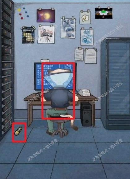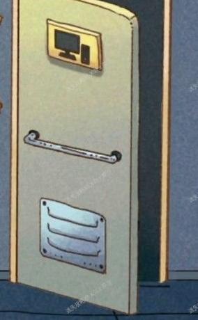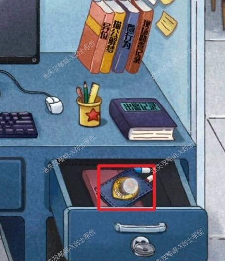 点击警察身旁的红色箱子,输入密码解锁后,可在箱内找到门锁的一个部件。