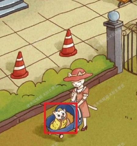 返回场景下方,找到猫妈妈和她的孩子,点击孩子并将之前获得的门锁部件交给他,即可从他那里拿到门锁的另一部分。