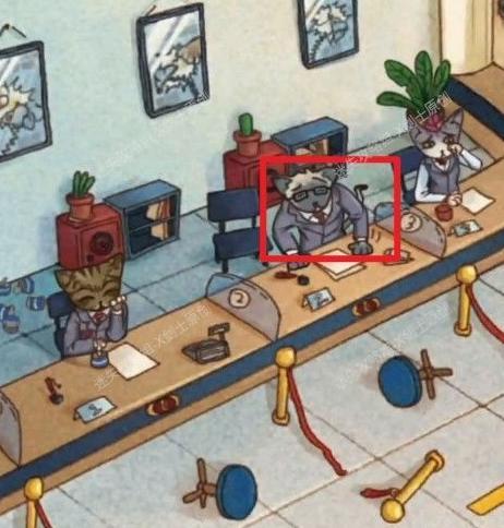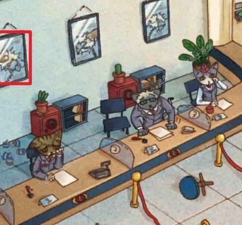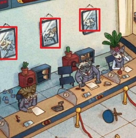 进入银行,点击中央的猫咪对话,结束后可获得一张破碎的照片。