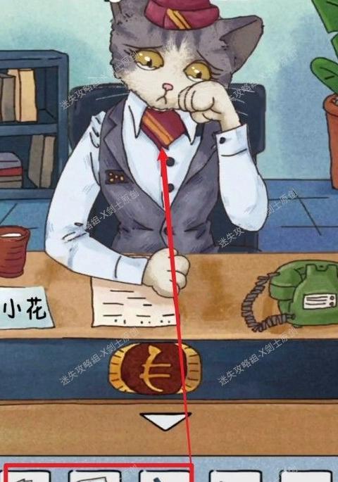 退出后在地上找到银行行长的猫抓板,前往室外与行长对话,将猫抓板交给他,即可获得办公室门卡。