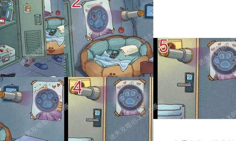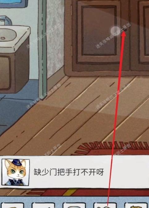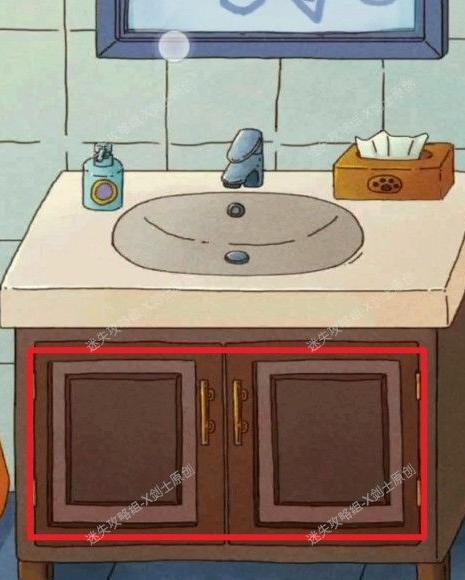 擦拭上方镜子可看到密码线索,打开下方柜子能取得猫砂铲。