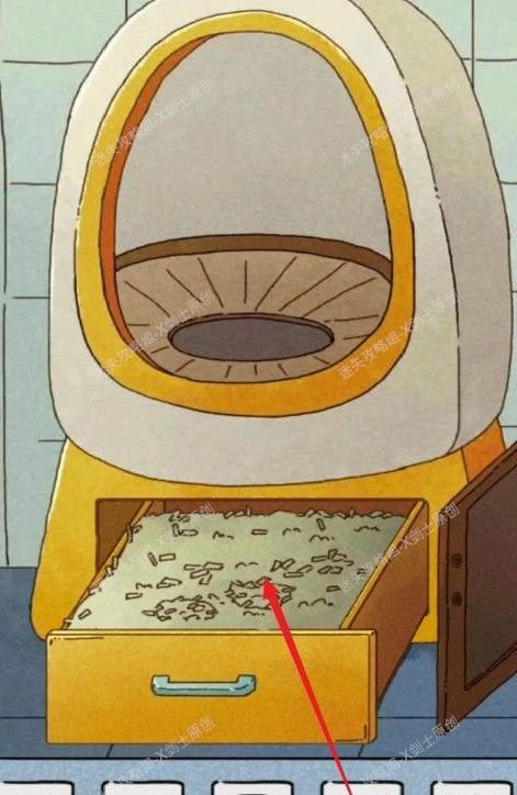 用柜中找到的猫砂铲挖开猫砂,即可获得黄金鱼雕像。