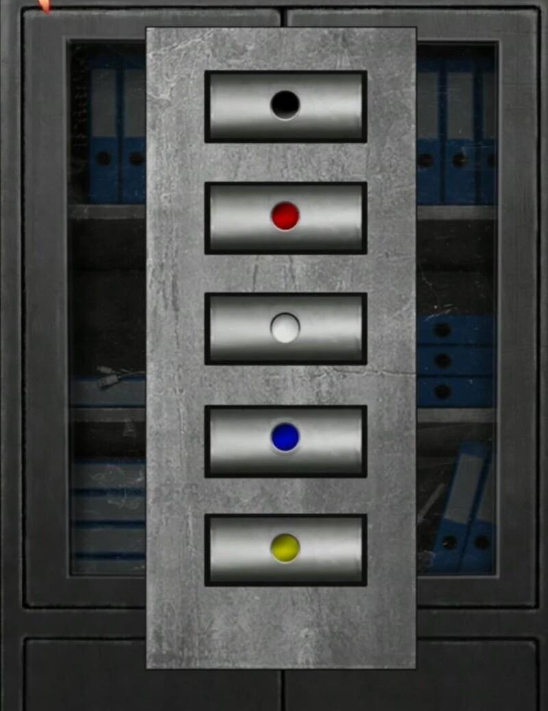 将线索图与右侧墙上的图案结合,可得出新的颜色顺序:黑、红、白、蓝、黄。先将打印纸放入打印机,再查看左侧柜子上部,将门锁颜色调整为黑红白蓝黄,打开柜子取出数据线。将数据线连接到电脑左侧机箱,连接手机后点击电脑屏幕上的打印选项,即可完成打印,得到神像图案。