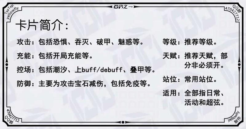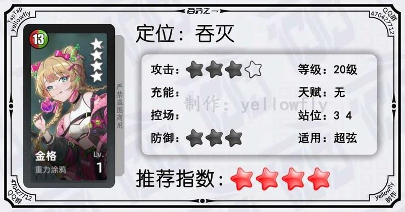 可随机选择吞噬敌人、将其变为虚弱状态或施加灵隐效果,三者之一生效。作为恐吞队或吞灭队成员,在超弦中高层表现优异,1级即可使用,建议不开启天赋。