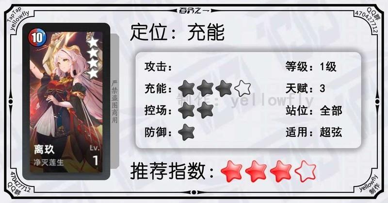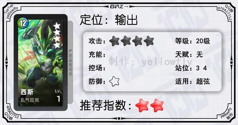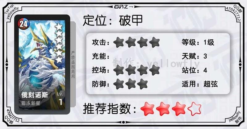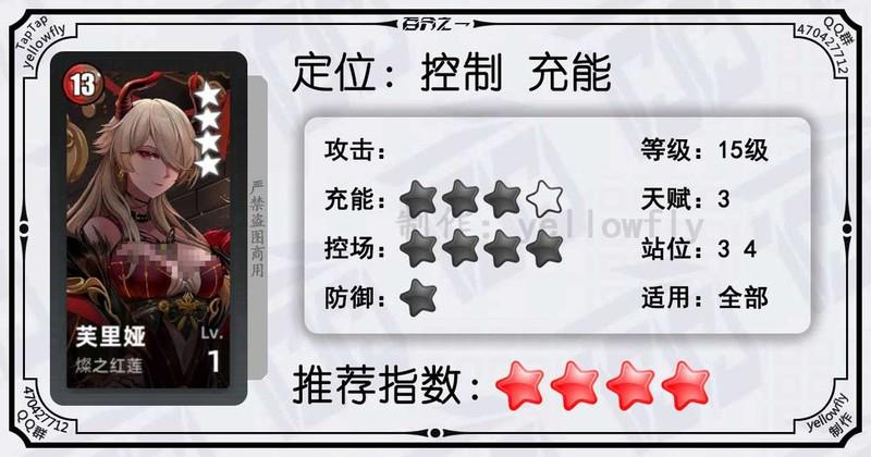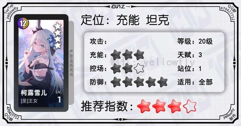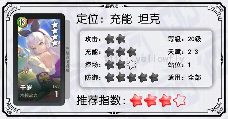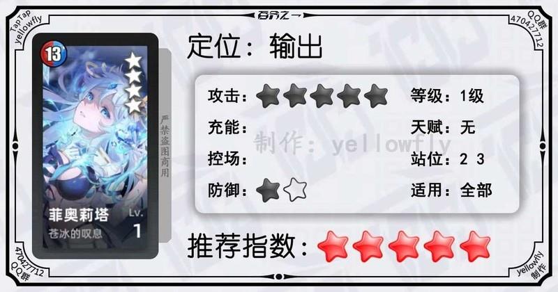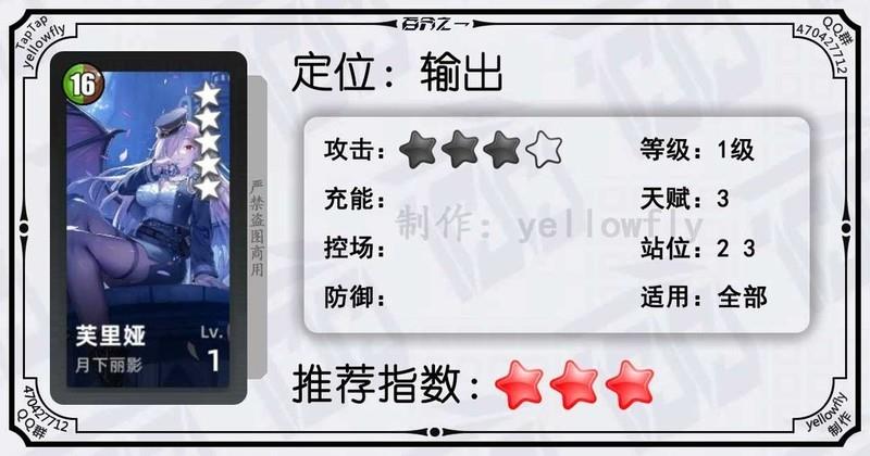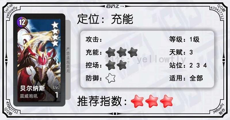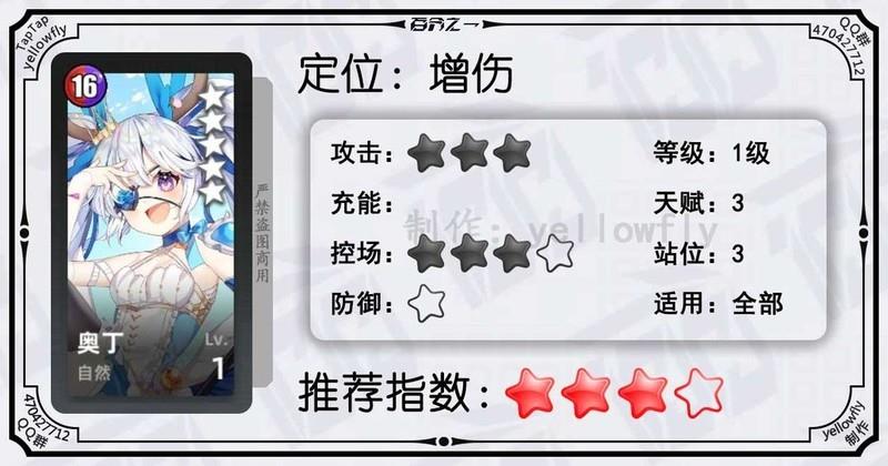 开局为全体龙属性队友充能,加快全队启动速度,是芙神队的重要成员。虽然技能能量需求较高,实战中可能难以释放,但1级即可使用,推荐优先开启3星天赋。