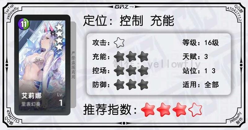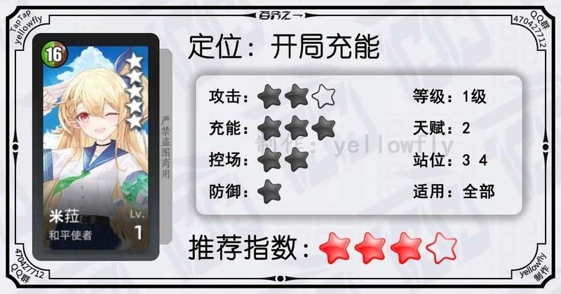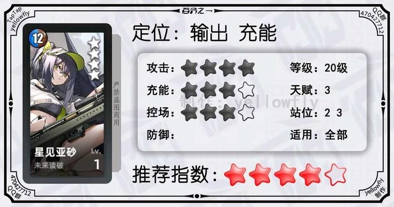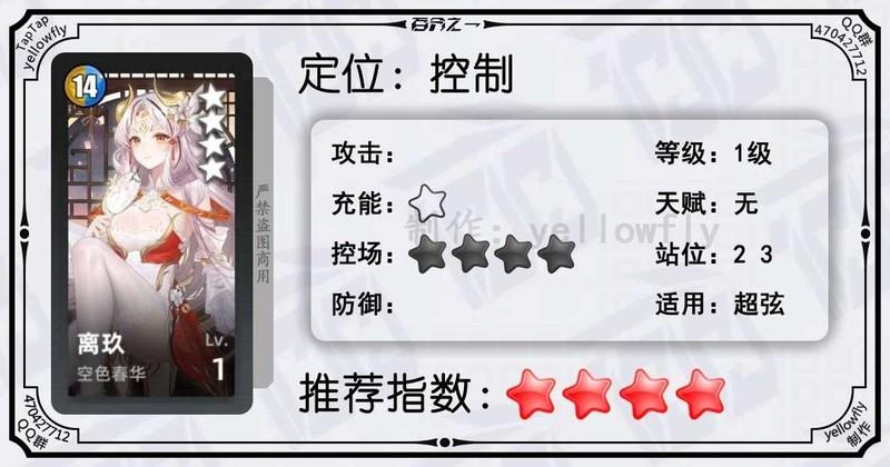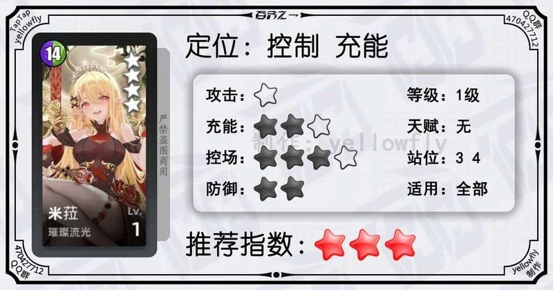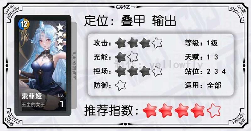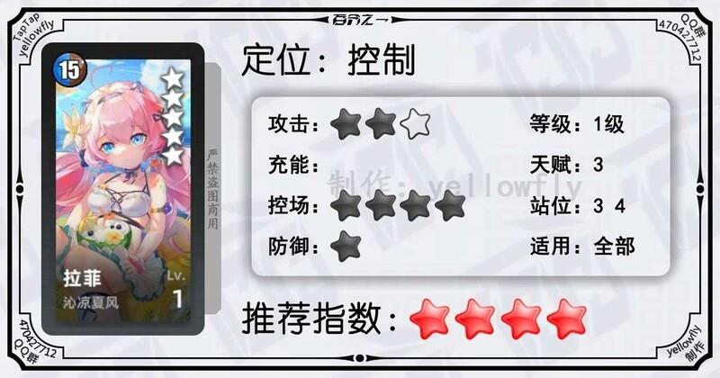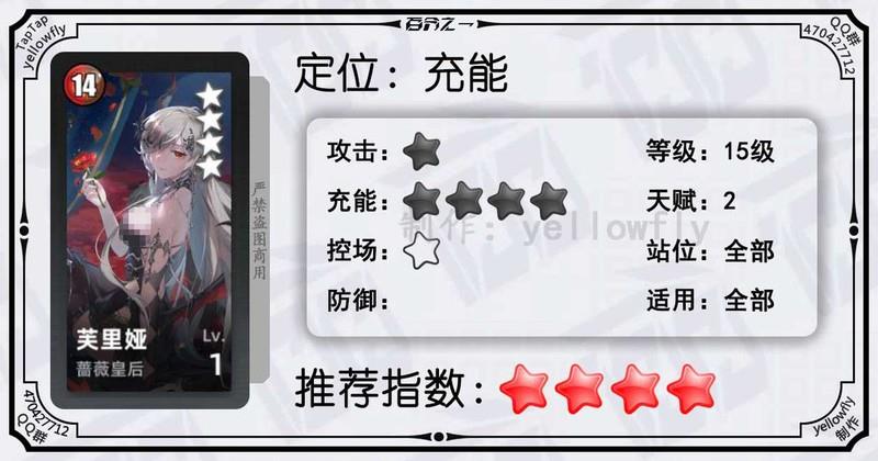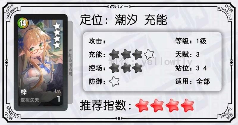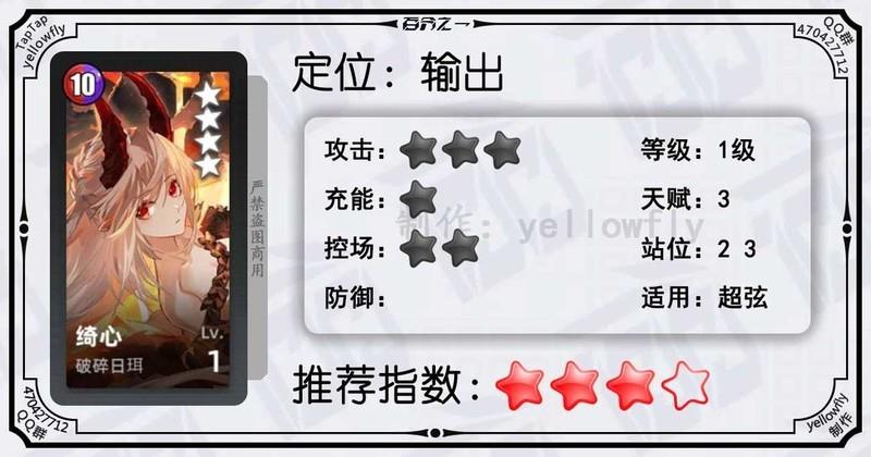 开局为全体龙属性队友充能,加快全队启动速度,是芙神队的重要成员。虽然技能能量需求较高,实战中可能难以释放,但1级即可使用,推荐优先开启3星天赋。