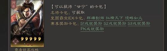 甘宁可通过名将卡包、皇图霸业EX卡包及赛季奖励卡包获得。