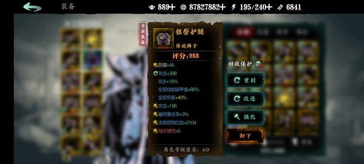 我之前裤子的属性是攻击力和破甲增伤,普通词条和强化词条也都带有百分比攻击加成。在这种情况下,选择七巧羁绊比魔宝羁绊更占优势,因为攻击力已经较高,继续叠加会导致稀释,而七巧羁绊的伤害提升更为明显。