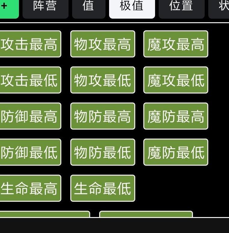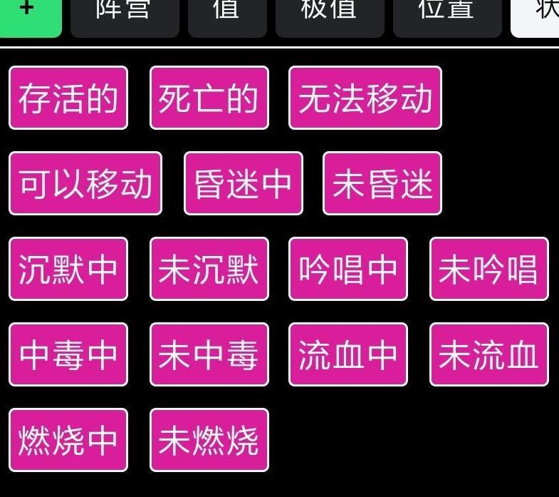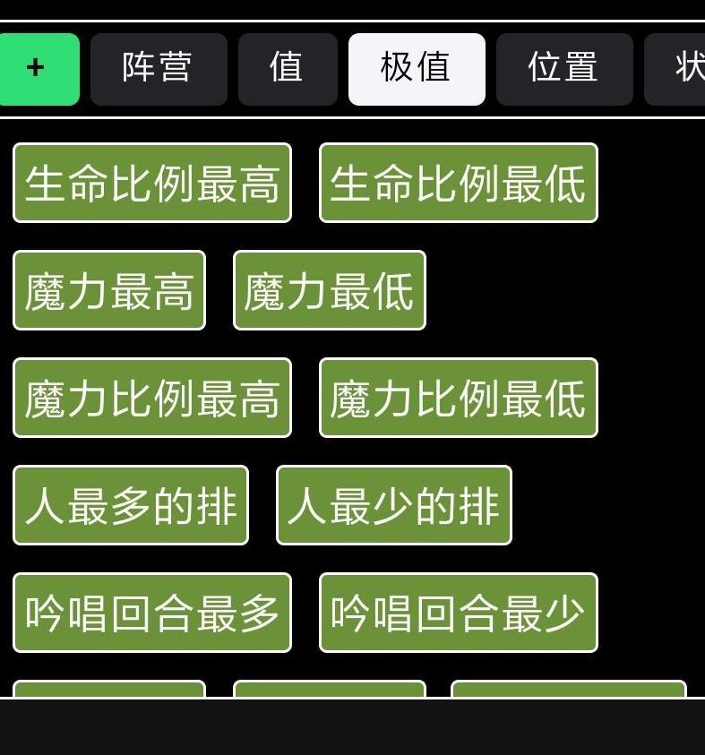 你将看到条件与目标两大类别下,各自包含阵营、数值、极值、位置和状态五项具体细分。