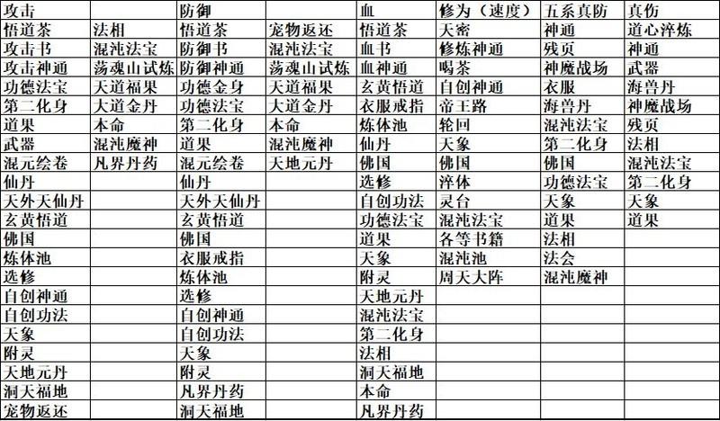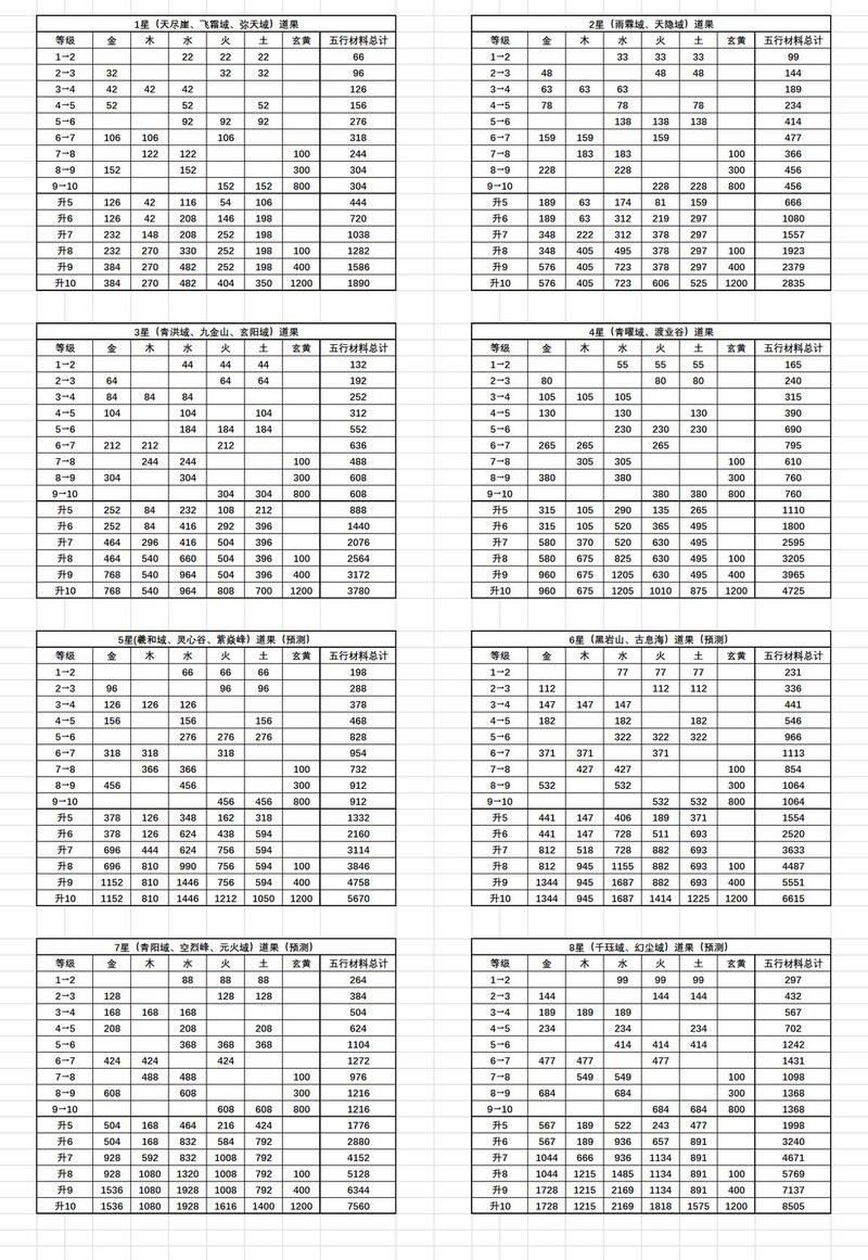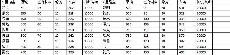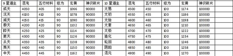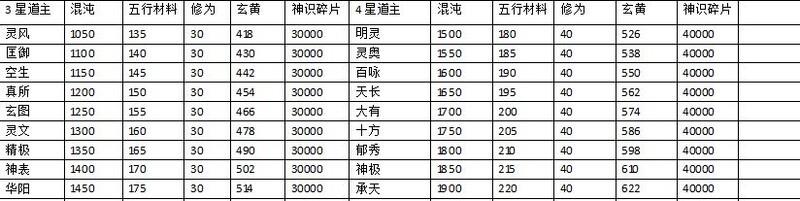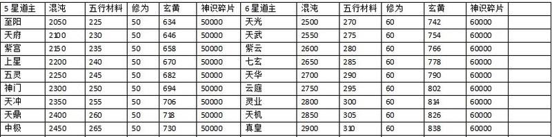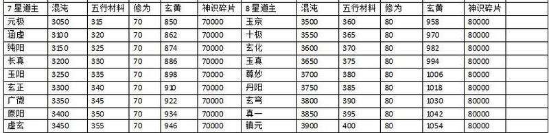 道果升级消耗表