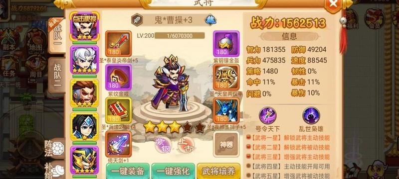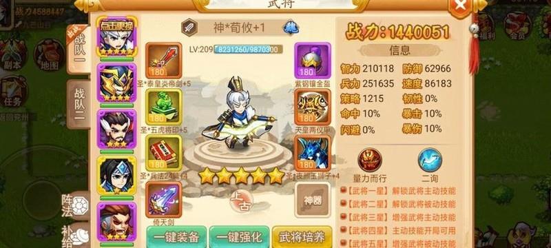 进入第二阶段的条件是在完成首周推进后,寻获夜照玉狮子并开启全部地图宝箱,届时将获得三星乐进,标志着第二阶段正式开启。本阶段核心目标为挑战24将台,通关奖励为稀有武器泰皇炎帝剑。推荐前期阵容搭配:荀攸、曹操、甄姬、张辽,搭配乐进或典韦以增强战力。在挑战24将台前,优先对夜照玉狮子进行锻造升品。锻造过程中建议使用蓝装和绿装作为材料,紫色装备则回收换取商店中的升品资源。完成后将夜照玉狮子装备至三星乐进,并确保其率先出手。战斗中,首轮释放冰龙技能控制全场,迅速清除杂兵,随后由乐进持续冻结敌方主将,形成有效压制,提高通关效率。成功通关后即可获得泰皇炎帝剑。后续培养重心应集中于进一步强化泰皇炎帝剑与夜照玉狮子,提升整体战斗力,为后续关卡做好准备。