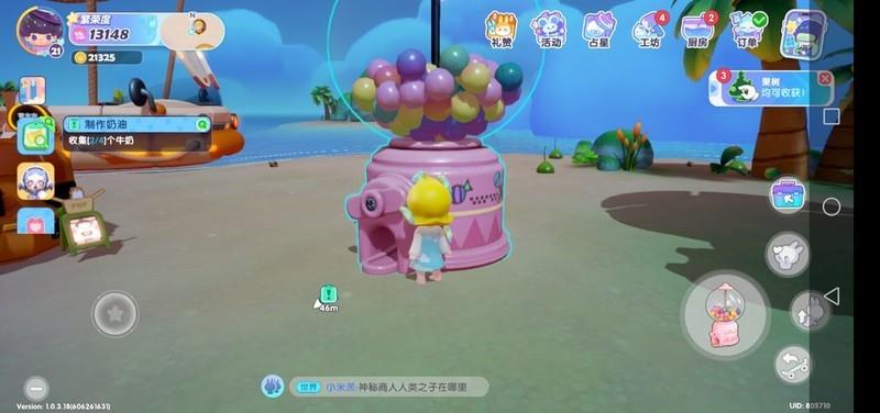 拜访好友家中,在沙滩处找到扭蛋机(固定位置),好友赠送星星概率棉花糖可得60体力,其次是棒棒糖30体力,每日访问3次,总计可获得90至180体力。