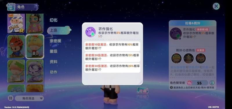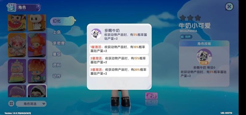铃兰麦是前中期的重要核心产物,主要用于合成面粉,需求量极大。通过升空奇遇记的被动效果,可有效节省体力消耗。当铃兰麦产量达到1000时,隐藏被动(亲密度)可减少100体力消耗。此外,其主动技能同样具备省力效果,开局赠送1星,优势明显,实用性高,值得重点培养。