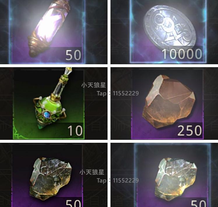 目前已知可重复获取的物品包括: