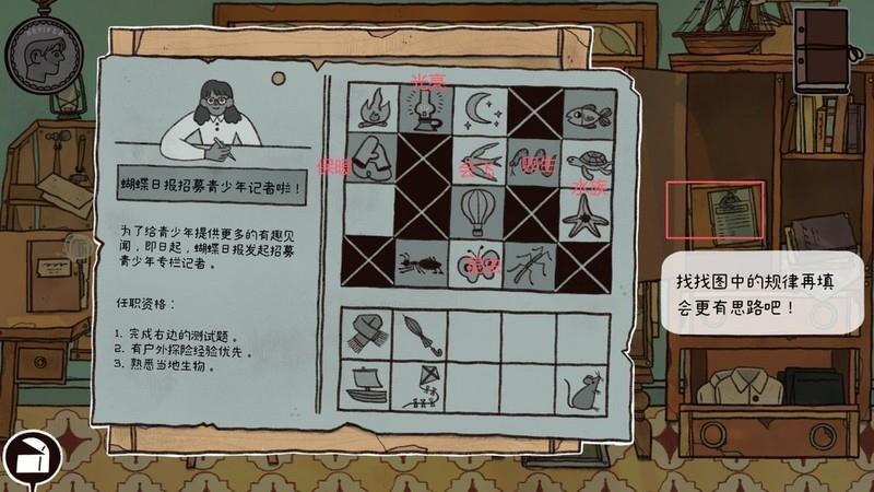 完成三个小游戏并点击书本,获取昆虫研究笔记