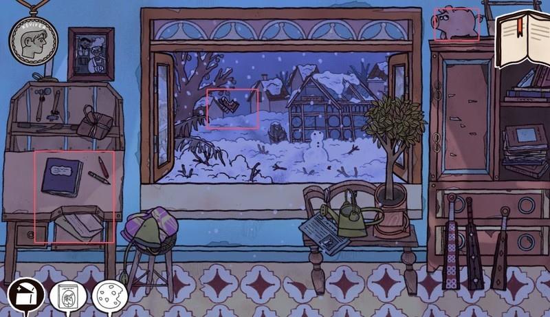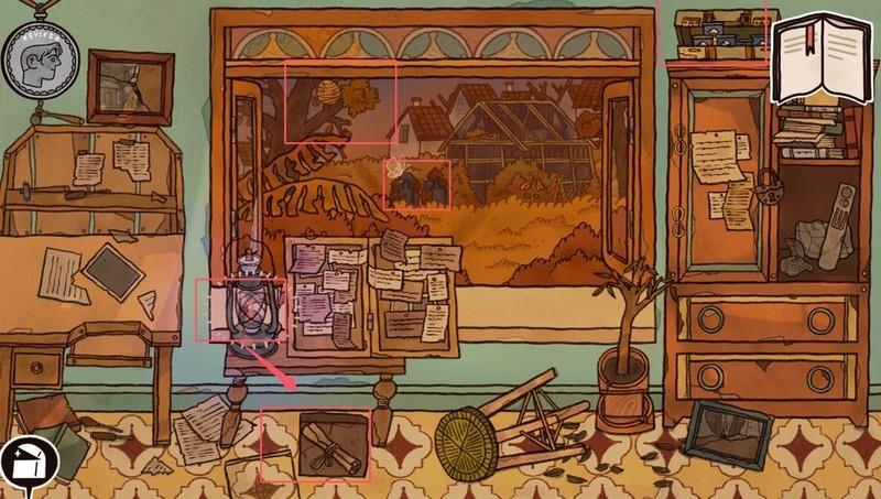 翻看日记和报纸,打开壁橱完成小游戏。