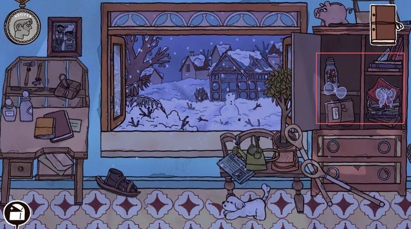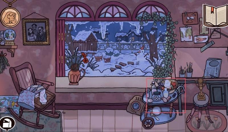 查阅日记后点击纸条,前往玻璃小屋并完成下棋小游戏。