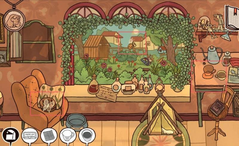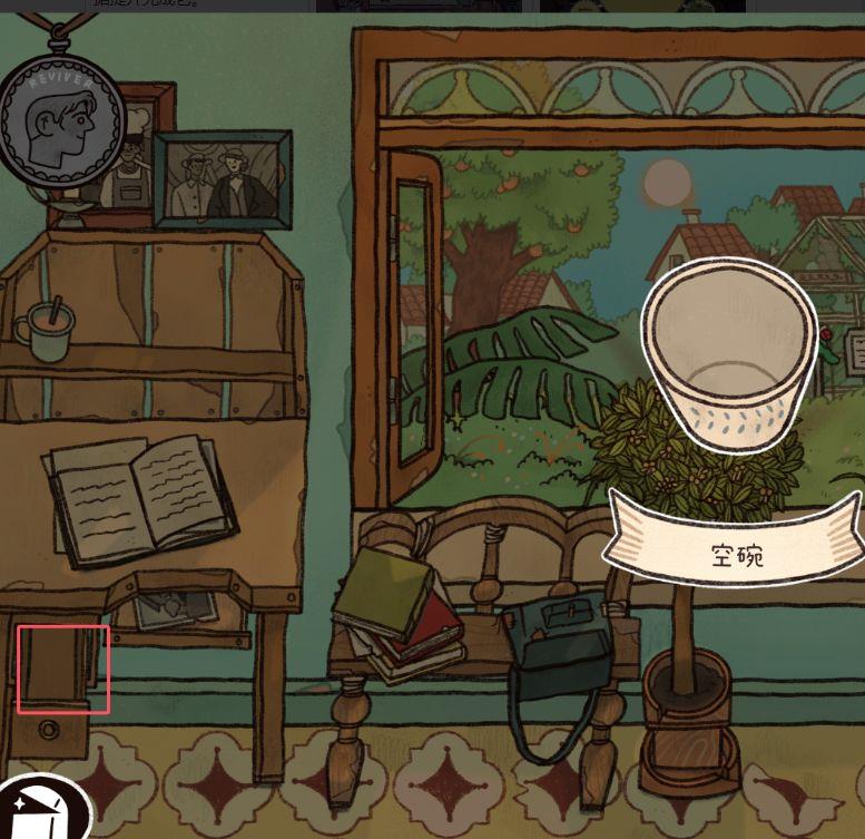 在G17年,从窗外获取吊坠,桌上取得滤杯,点击沙发进入小游戏。游戏线索藏于G16年水晶球中,摇晃后观察图案解谜。