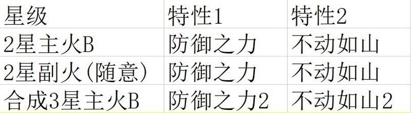 选择两个2星黄色神火,刷出防御之力与不动如山词条,将副火融合至主火B,使3星主火B同时拥有2级防御之力和2级不动如山。